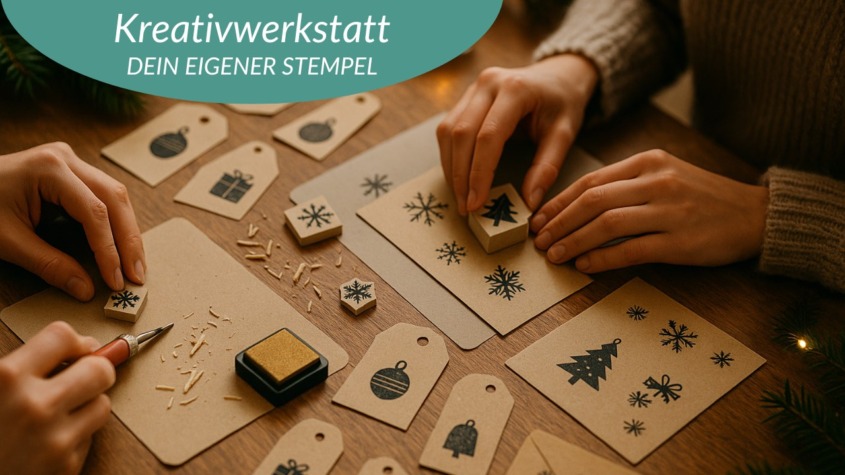 Deine selbstgestalteten Stempel nimmst du natürlich mit nach Hause und kannst sie für kreative Weihnachtsgrüße oder DIY-Geschenke immer wieder neu einsetzen.