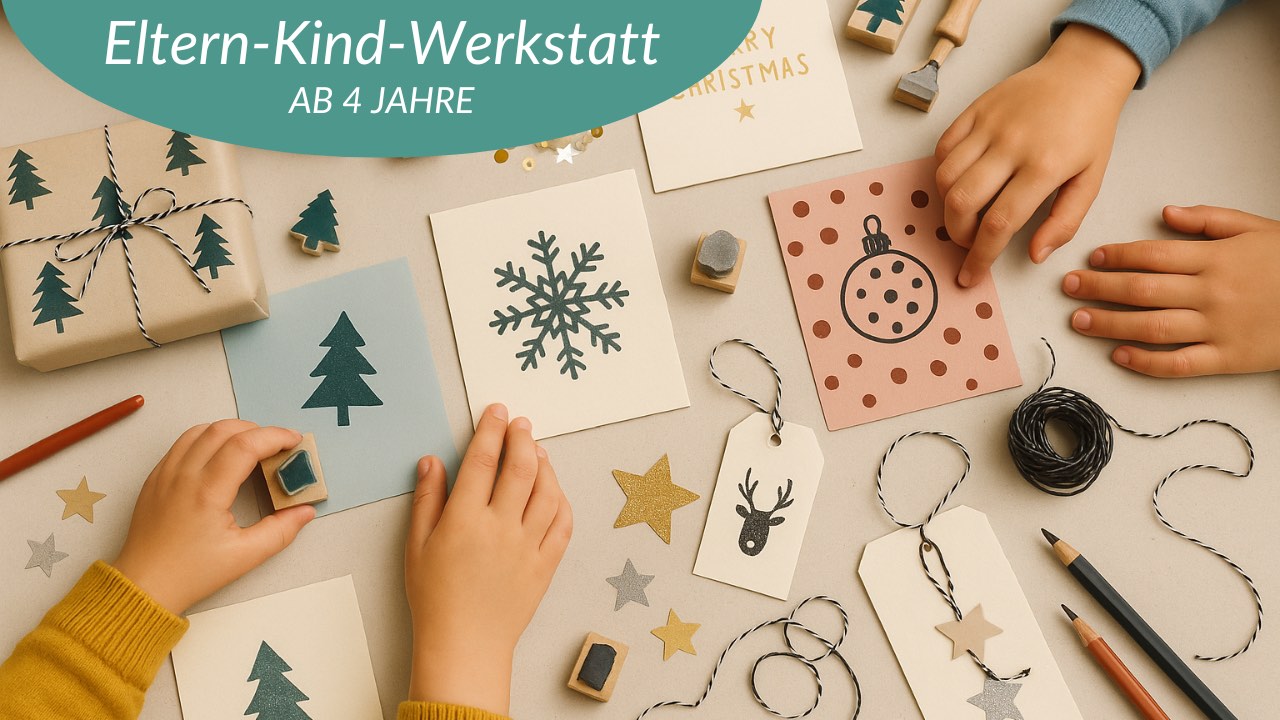 Lasst die Weihnachtsfreude beginnen! In diesem Workshop gestalten Kinder ab 4 Jahren gemeinsam mit einer erwachsenen Begleitperson liebevolle Weihnachtskarten, Geschenk-Anhänger und kreative Basteleien für die Weihnachtszeit. Dabei verwenden wir von mir selbst handgemachte Stempel sowie eine Auswahl an Glitzerfarben, Stickern und vielen weiteren kreativen Materialien. Ob als selbstgemachte Weihnachtskarte, winterlicher Gruß für liebe Menschen oder […]