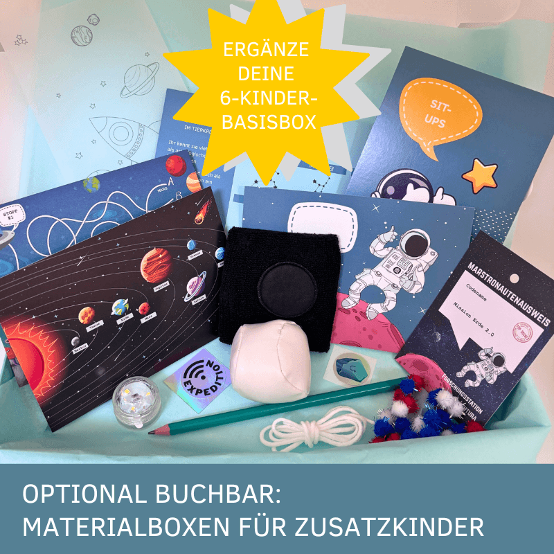 Benutzung nur unter Aufsicht von Erwachsenen. Bei mehr als 6 Kindern empfehlen wir euch eine 2. Person zur Unterstützung. Bei dieser Box wird mit Stiften geschrieben. Deshalb empfehlen wir euch, den Tisch mit einer Tischdecke zu schützen.